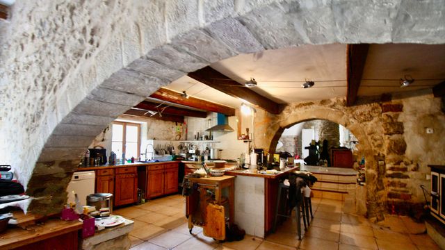 Spacious rooms, high ceilings, original features such as vaulted rooms with exposed beams and stonework and magnificent stone arches make this an attractive and charming property.