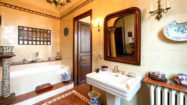In a prime position overlooking the valley, the house was built by master craftsmen using the finest materials and their high standards were maintained when this luxury residence was renovated. Ground floor: entrance hall, dining room, living room with coffered ceiling and access to a superb private terrace overlooking the gardens, office, kitchen and WC.