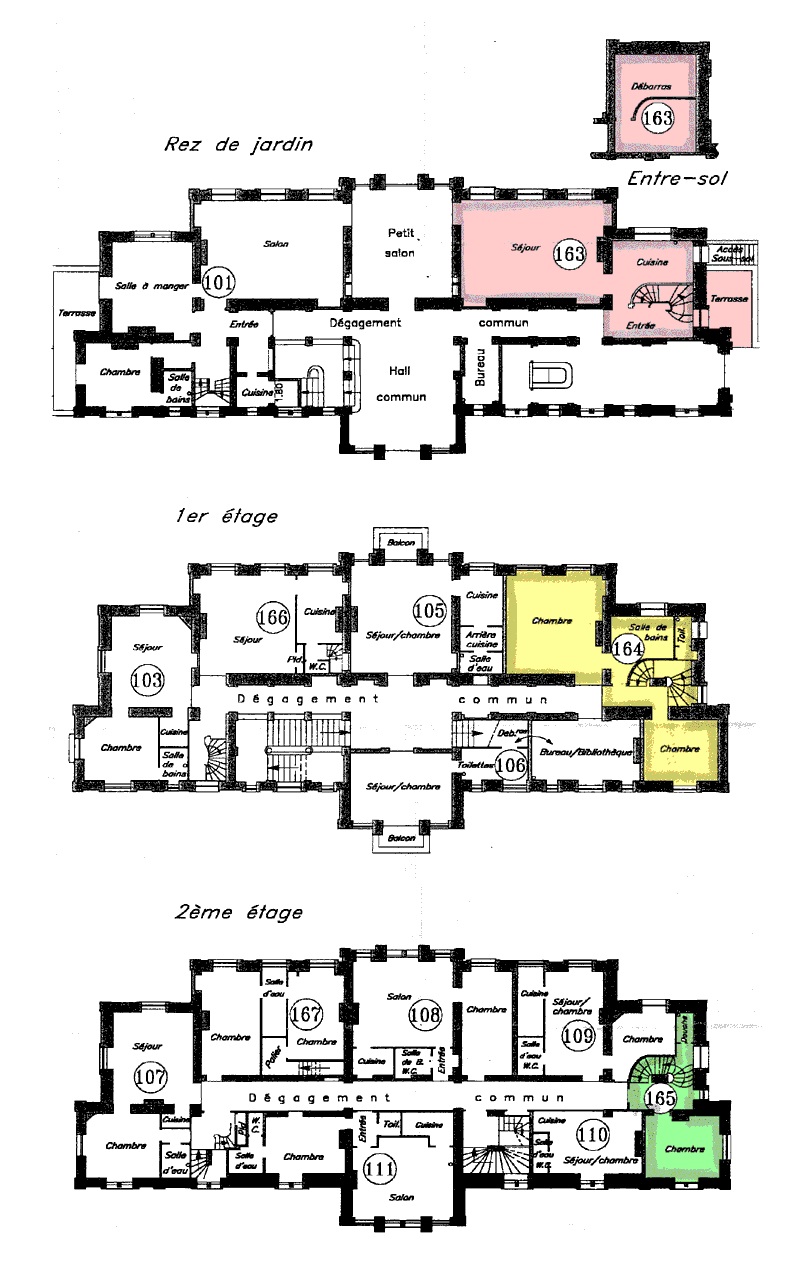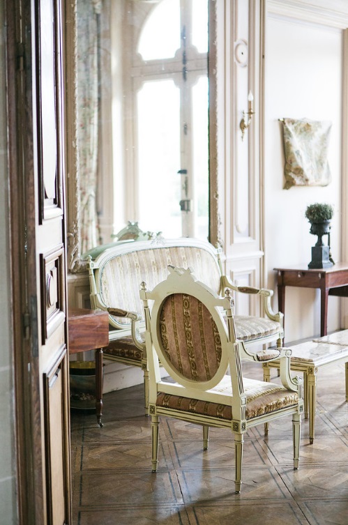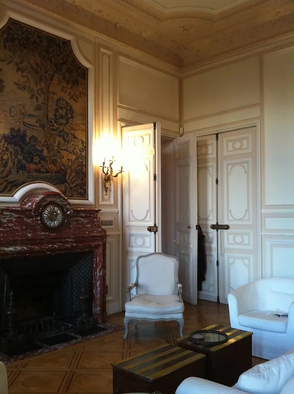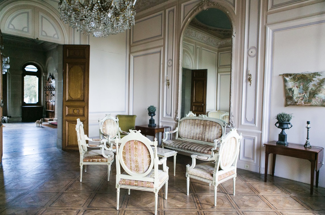 Het appartement zelf is gelegen in de rechtervleugel van het kasteel, gerenoveerd, hoge plafonds, fors lijstwerk, originele marmeren schouwen, wandtapijten in grote salon, origineel ligbad, prachtig uitzicht op de vijver, gazons en tuinen.