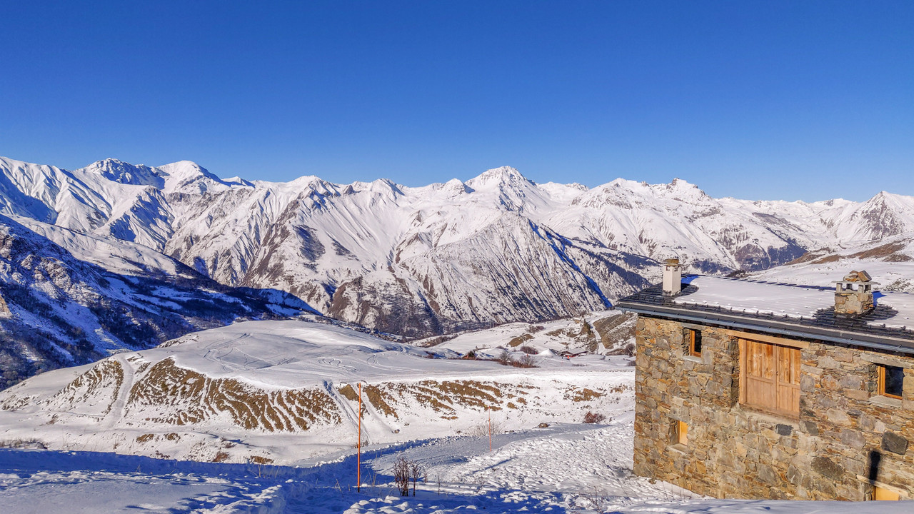 114156LDS73 - At the heart of the Belleville Valley, this mountain chalet is surrounded by breath-taking mountain views, accessible from the Saint Martin Express chairlift- offering world renowned skiing right from its doorstep.