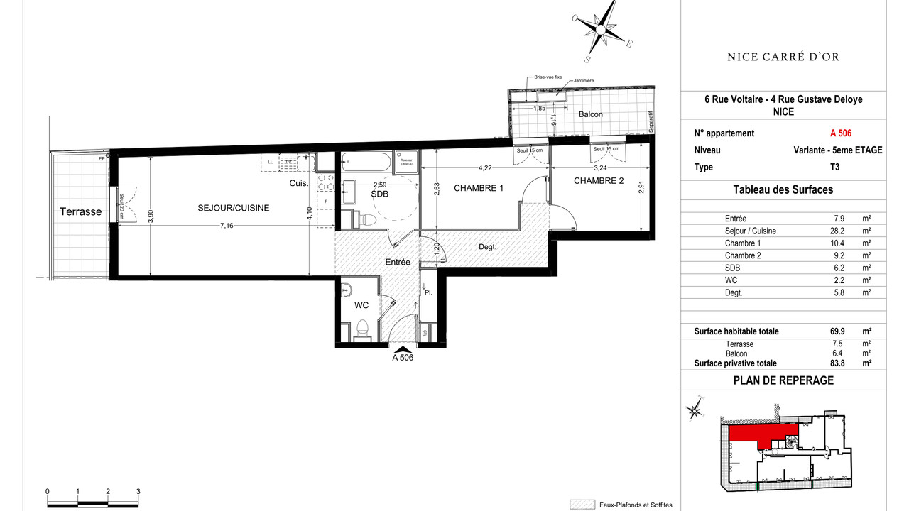 This 2 bedroom apartment is set on the top floor, it offer an entrance, the living room with open fully fitted kitchen opening unto the balcony with West exposure, 2 bedrooms opening unto a balcony, shower room, toilets, storage.