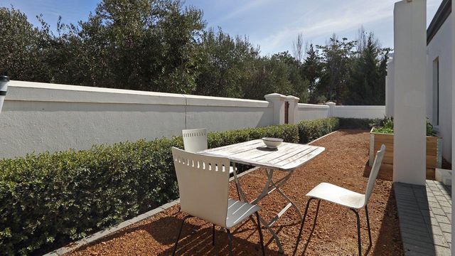 € 290.259 (ZAR 5.750.000) ID: 147890This house is situated in the well known Croydon Olive Estate. Residents live in a secure rural setting in the wine lands where they can unwind, enjoy the lifestyle centre with friends and family, take part in fun harvest festivals, picking olives, or simply have an evening dinner in the olive groves. Beautiful views overlooking the Helderberg mountains and the olive groves. The house has wooden flooring throughout and modern quality finishes. The living areas open onto a well-trimmed irrigated private garden.