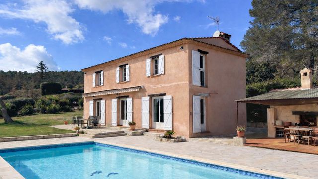 A42997JTO83 - Located in Montauroux with breathtaking panoramic views over Lac de Saint-Cassien, this 166 m² villa offers bright, spacious living throughout. The ground floor features an entrance hall, dining room, and a light-filled living room with wood-burning insert, all overlooking the garden and pool. The kitchen opens onto the terrace, and a ground-floor bedroom with en-suite shower room provides convenient accommodation. Upstairs includes an office area, three bedrooms, dressing room, bathroom and shower room. Set on 3,500 m² of land with a store room and covered BBQ area, the property benefits from double glazing and electric heating. A rare opportunity with exceptional views.