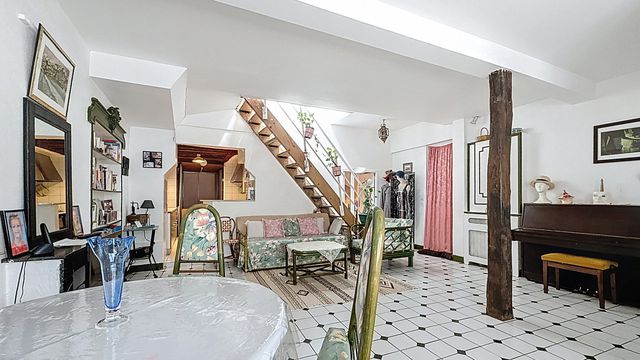 A41392LUM75 - In the heart of the 10th arrondissement, just steps from Marché Saint-Quentin, this artist's duplex combines the charm of a traditional Parisian workshop with the tranquillity of a quiet, pedestrian-like street.
