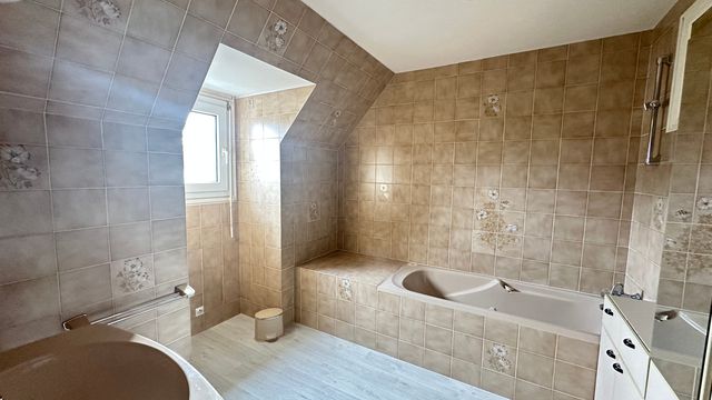 A35160HL22 - In Brittany, in Perros-Guirec on the Pink Granite Coast, large 3/4 bedroom house with garden. Superb Trestraou beach just a few minutes away. Set in a quiet cul-de-sac in the centre of the village of La Clarté, between Perros-Guirec and Tregastel, within walking distance of the customs path. ground floor: large hall, kitchen opening onto dining room, living room with wood-burning stove, bedroom (approx. 16 m2), shower room with WC, sitting room with extension and garden terrace, storeroom/laundry room opening onto adjoining garage. First floor: large bedroom (approx. 23 m2) with plenty of storage space, hallway and study area, bedroom (approx. 14 m2),, bathroom and separate WC. Large courtyard with space for several vehicles, independent double garage and well. Lovely wooded garden facing west. Details and panoramic views on request.