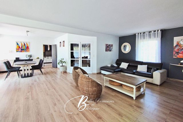 Op slechts 1 km van een bloeiende, levendige en goed uitgeruste stad, geniet deze woning van een ideale ligging: slechts 20 km van Lorient en de stranden.