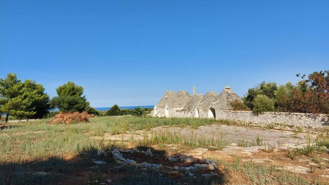 De boerderij bestaat uit het hoofdgebouw, stallen, schuren, oliemolen, schaapskooi en een groep trulli met uitzicht op de zee.