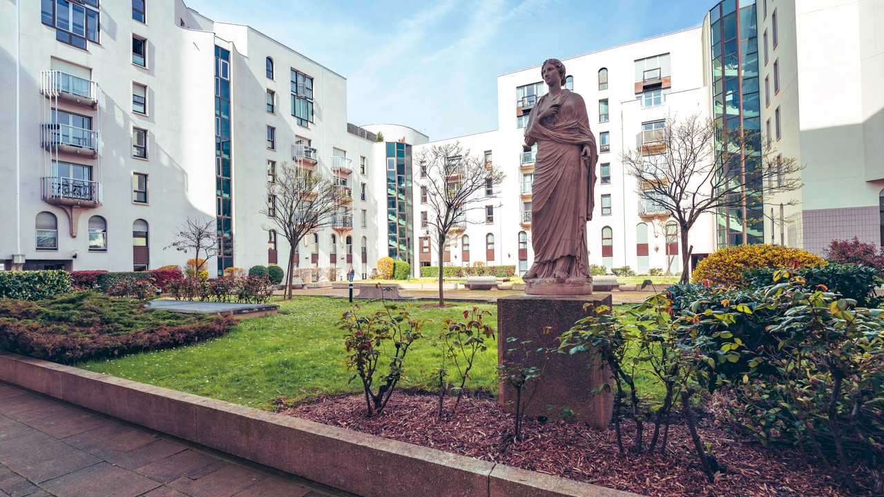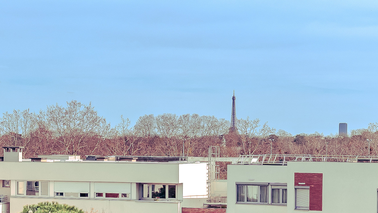 A27861DPE92 - PUTEAUX 92 - Georges Pompidou - 3 bedrooms (4 rooms) - 87,36m2 - EPC label Class D - See floor plan and visuals - At the heart of a magnificent landscaped park with a countryside feel, this beautiful, quiet and light-filled with a triple exposure (E/S/O) family apartment on the 4th floor / §th of a pleasant and very wel maintained residence dating from 1988, with lift. Recently renovated and benefiting from sunshine all day long, it includes a living room with dining and sitting areas, a beautiful fully-equipped contemporary kitchen with glass walls, a master suite with shower room, 2 further bedrooms, a 2nd shower room and a WC. A cellar and 2 parking spaces complete this property, which benefits from an unobstructed view of the top floor of the Eiffel Tower and offers a rare haven of peace. Just 2 minutes from all amenities (shops, transport, schools, nurseries, etc.) in a residential area close to the town centre, 2 minutes from the conservatoire, the Seine and the Bois de Boulogne.