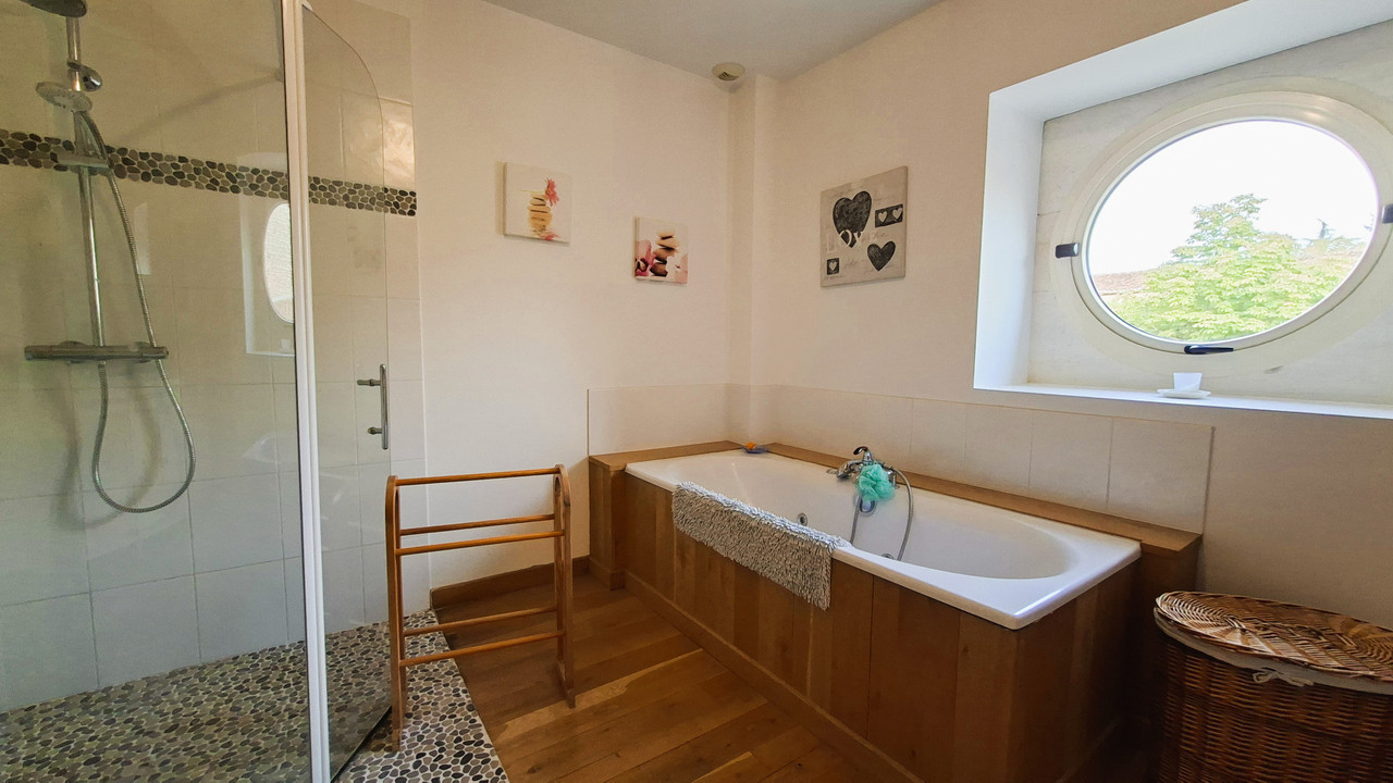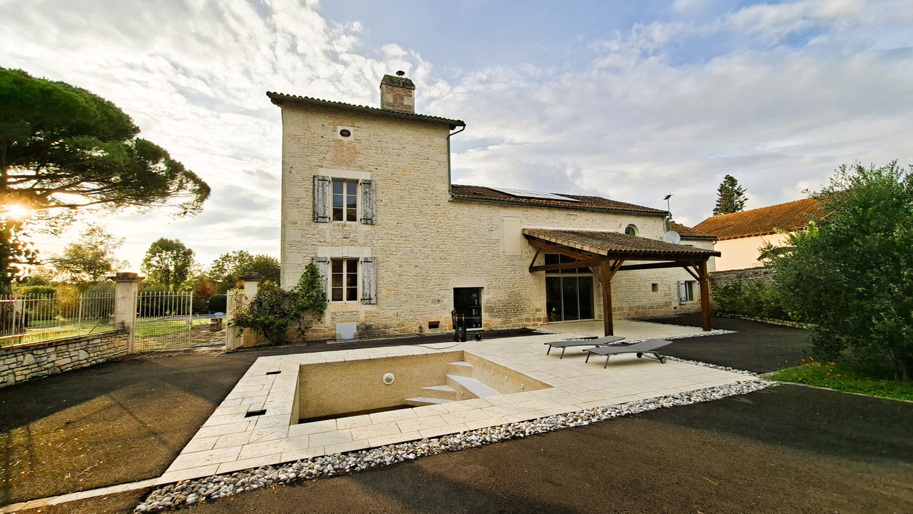 A40313SE16 - This spacious, light, detached stone townhouse with separate Annexe has been thoughtfully conceived from start to finish using environmentally friendly quality materials with top priority to energy efficiency and insulation. Walking distance to all market town amenities but nestling peacefully in its very private location behind large traditional gates. Angouleme only 32kms distant with its mainline railway station. Bordeaux, Poitiers and Paris by train. La Rochelle and coastline only 90kms.