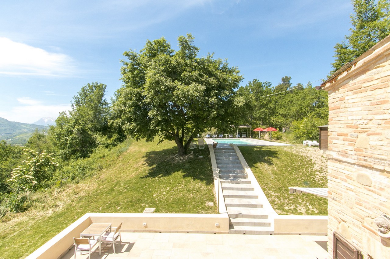 The external area adjacent to the house has recently been paved as well as the staircase leading to the swimming pool. From the garden and from the house some of the most beautiful views of the Marche hills and the Sibillini Mountains.