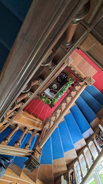 The entrance hall with sweeping staircase is reached by a double sided outside staircase (wedding photo opportunity!)
