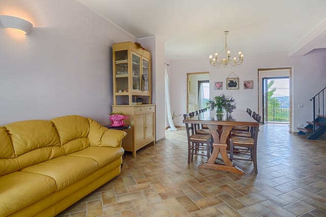 The very well maintained gardens include a stunning panoramic infinity pool (13.5 m x 6.5 m) with gazebo and an old pizza oven which can be restored. The garden is surrounded by 1.43 ha of arable land, 70 olive trees.
