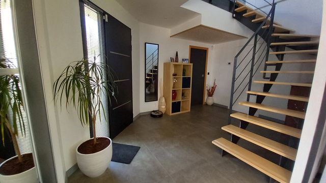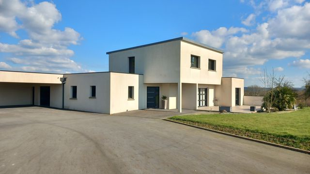 A35111CAW22 - Located in an attractive village in Central Brittany, this large modern property was built to high standards in 2017. The house presents beautifully and features a luminous open-planned kitchen and living space with acoustic soundproofing, an office, a downstairs bedroom with bathroom and dressing room. There are two terraced areas both accessible from the living area.