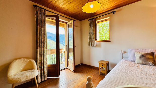 The chalet also includes a garage and a space with the potential to create an independent studio. A beautiful garden surrounds the property, offering stunning views and generous green spaces. Additional parking spaces are available.