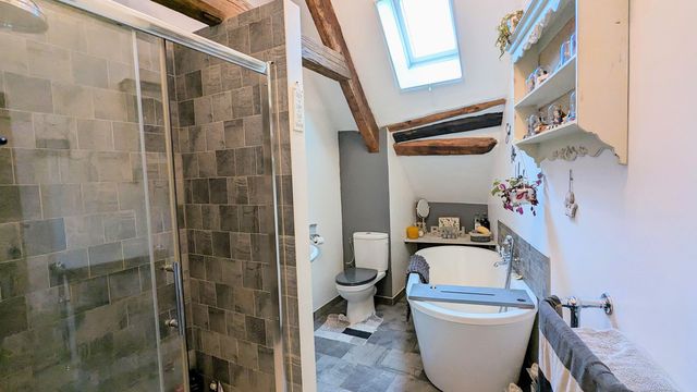A19057AMC87 - Large open living spaces which have kept the character of the former barn. There are 2 one bedroom gites and an in-ground pool and pool house with bar.