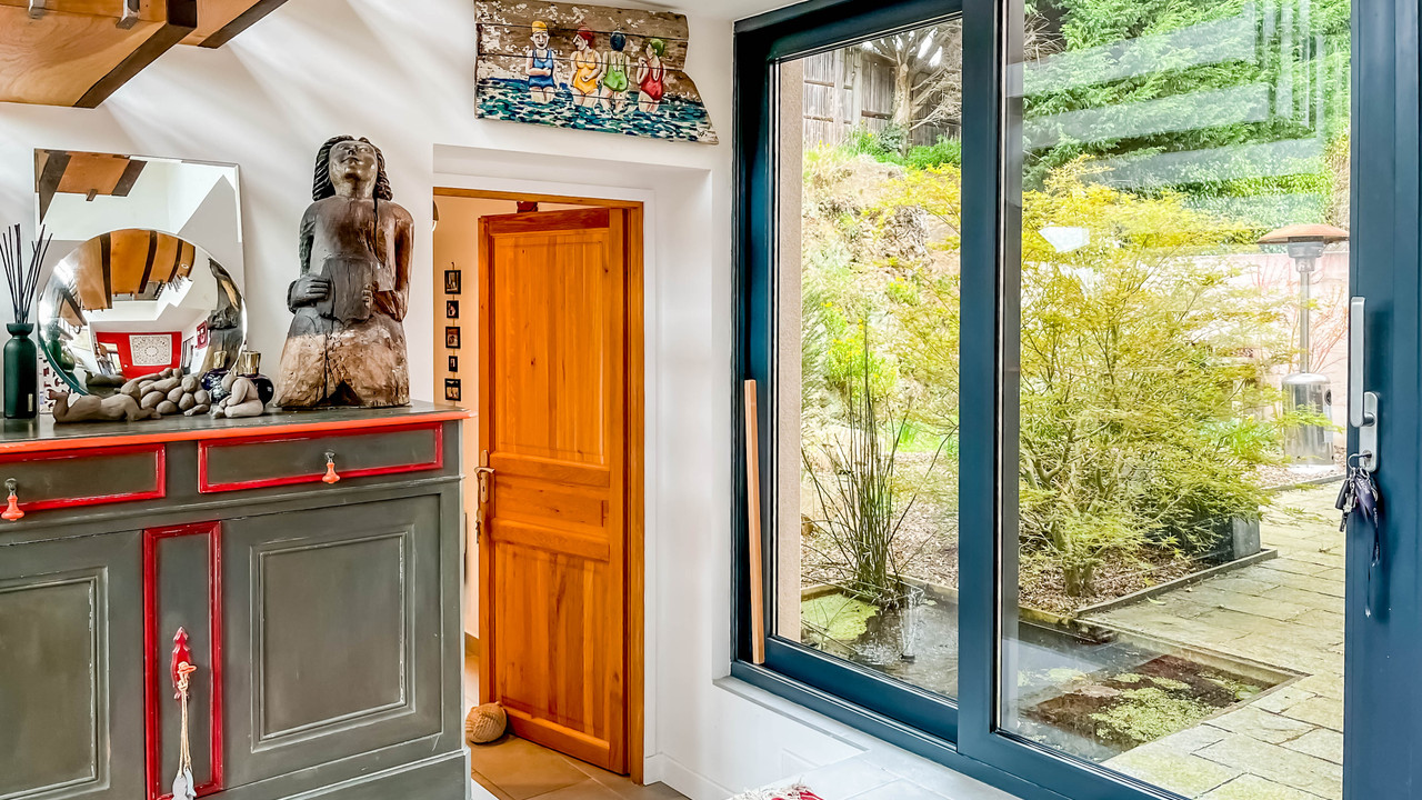 Outside, enjoy a south-facing garden, wooden terrace, and heated jacuzzi-pool with counter-current system.