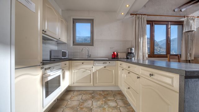 Its dual-aspect design offers panoramic views and multiple orientations. This property is sold fully furnished and includes a large cellar, a ski locker, and a secure garage.