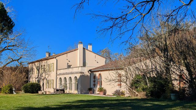 All around, a park with its paths and century-old trees . At the rear an incredible bamboo grove on the banks of the River Agout,with private and direct access