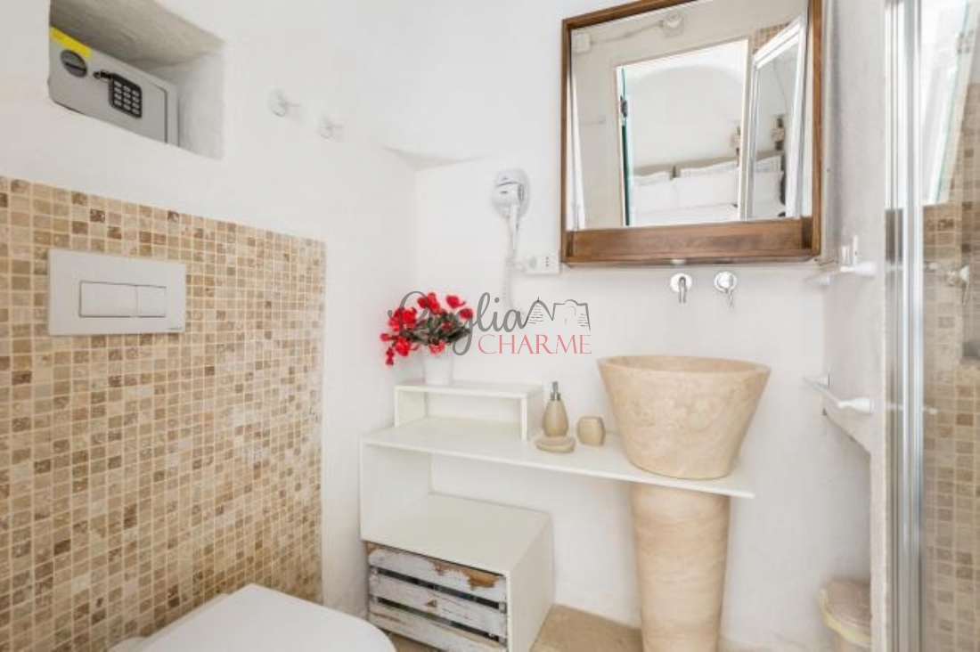 De woning bestaat uit een aparte trullo met slaapkamer en badkamer.