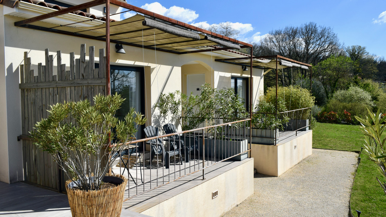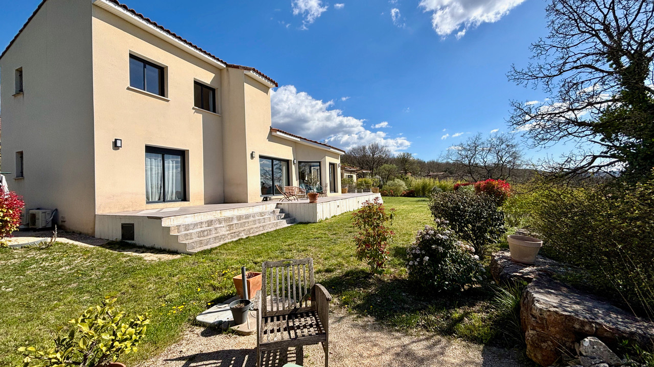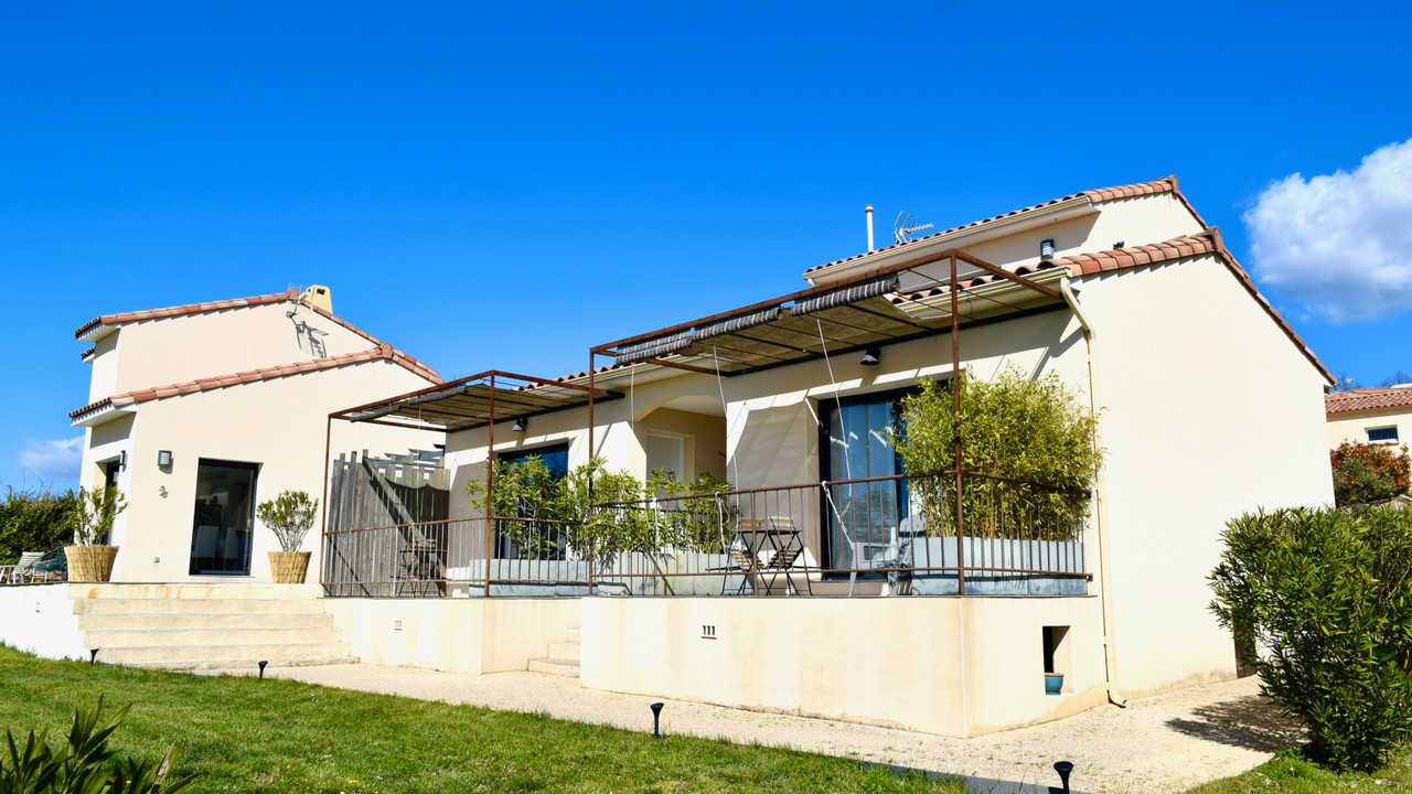 This recently built, highly energy-efficient detached villa is situated between Barjac and Saint-Amb