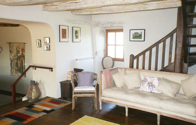 The main house is approached up a flight of stairs, via a pretty terrace through a front door into the kitchen/Dining Room (41m2). Has been fully fitted out with floor and wall mounted kitchen units. there is a wood burning stove in this room. The floor is in in stone and there are central heating radiators.