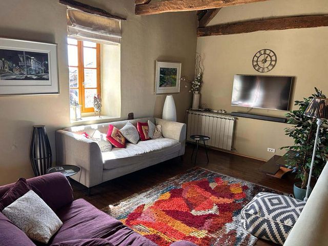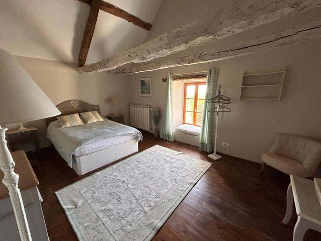 Under the house there are two extensive full height cellars. the gite has a living/sleeping are and kitchenette and a mezzanine floor with bunk beds and a bathroom.