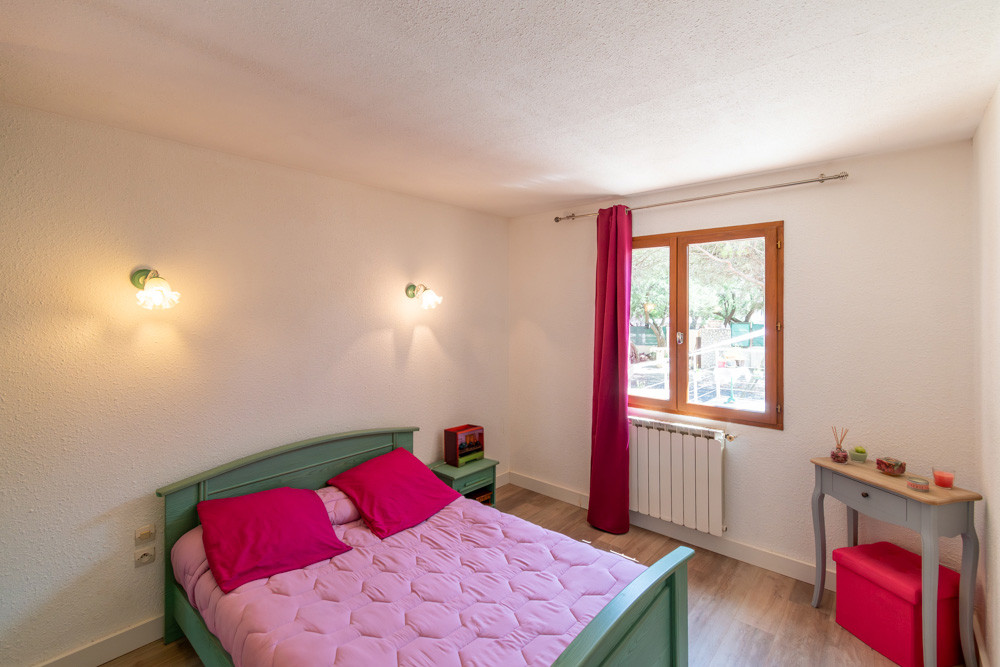 A31152JAV11 - Charming bungalow built in 1992, located 650 meters from the village center of La Palme and an 8-minute drive to the beach. Set in a peaceful, natural environment with no direct neighbors, the property includes 4250 m² of fully fenced land, with 50 m² buildable space. Recently insulated, renovated bathroom. Features double glazing, gas central heating, reversible air conditioning in the living room, and wooden shutters. Connected to city water, equipped with a septic tank, and fiber optic internet. Interior: entryway (10 m²) with built-in closet, three bedrooms (11,5, 12 and 12,5 m²), bathroom (9 m²) with large walk-in shower, spacious living room (42 m²) with open kitchen (10,5 m²), and sliding glass doors leading to a 52 m² terrace. Additional: three small outbuildings (6-10 m²) and a well (water contains 0.1% salt), and an 18 m² basin (60 cm deep) connected to the well (ideal for keeping fish), two dog kennels, an aviary, and a chicken coop. Potential to build or add horse stables.