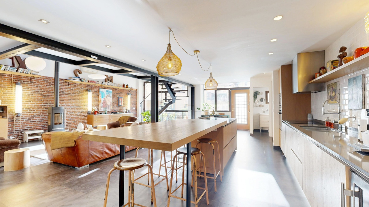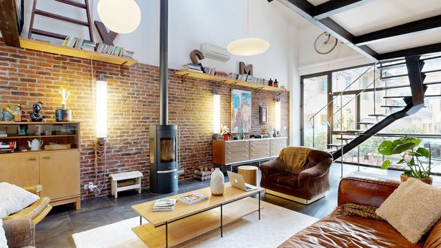 This charming triplex boasts a unique, industrial-style design. Features include air conditioning and double glazing.
