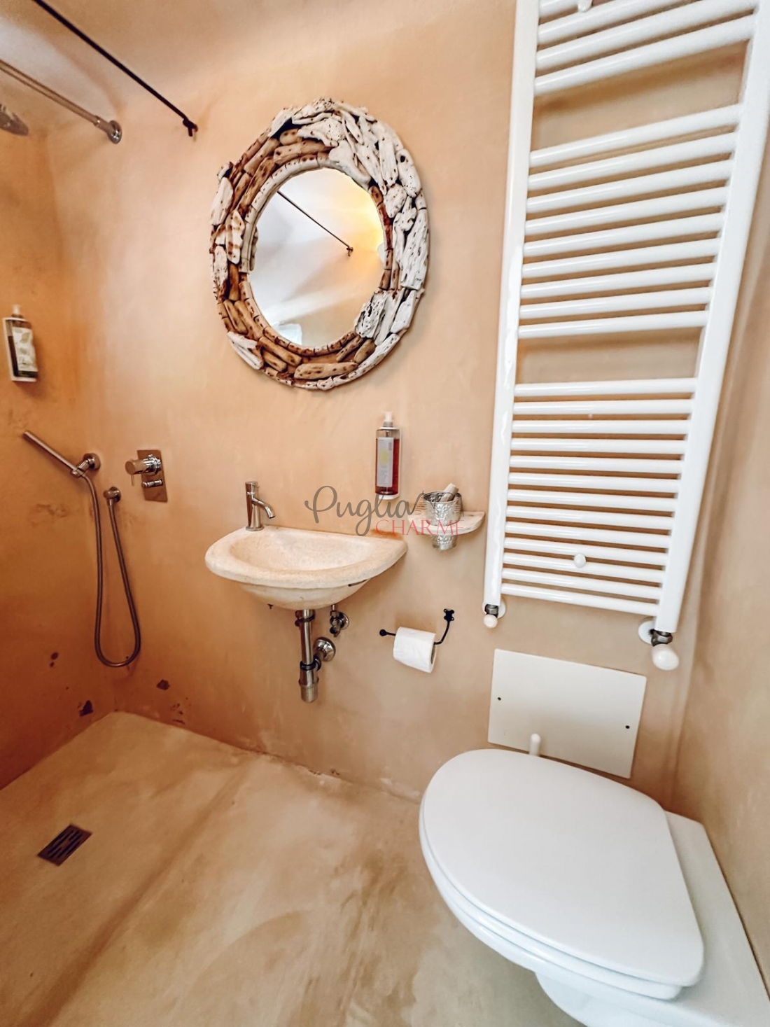 Van bijzonder belang is de lamia aan de voorkant, die als volledig onafhankelijk bijgebouw wordt gebruikt. Deze structuur omvat een kitchenette, een woon-eetkamer, een slaapkamer op de tussenverdieping en een badkamer, waardoor het een uitstekende oplossing biedt voor gasten of voor degenen die een privéruimte willen.