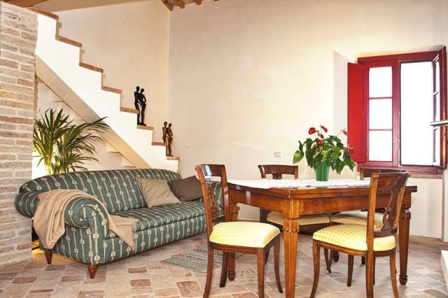 The property is located in Monsano, in the province of Ancona; Falconara airport and the seaside of Senigallia and Riviera del Conero are 15km away. Nearby, there are some typical Marche villages like Jesi, Monte San Vito and Morro d’Alba, with its wine "Lacrima di Morro d’Alba"; all this area is famous for food and wines. The public road is only 10 metres from the house, and the town of Monsano is 3km away. A beautiful view over the countryside, from the sea to the Appennino and Sibillini mountains, surrounds the house.