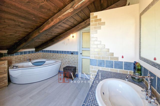 An internal staircase leads to the first floor, of about 120 sqm which is accessible also from the external stairs typical of the Marche farmhouses, which is divided into an additional living area, three double bedrooms one of which with en-suite bathroom with bathtub and shower and a walking closet, an additional bathroom with shower serves the other bedrooms.