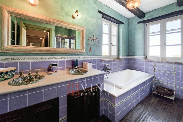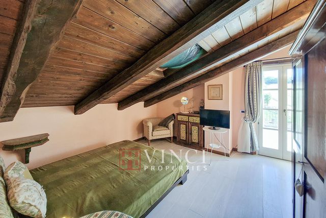 The internal staircase leads to the second attic floor, also finely finished, hosting a study, two bedrooms, and a bathroom. This floor also offers access to the large 35-square-meter terrace.