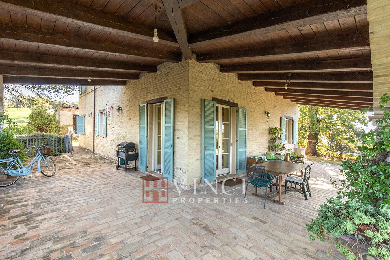 € 615.000 ID: 175805Typical three storey brickwork restored Marche farmhouse of about 325 sqm, with very large portico (porch) of about 60 sqm, detached outbuilding to be rebuilt of about 90 sqm, cellar of about 10 sqm, on a fenced garden of about 2.500 sqm, with extraordinary view of the Sibillini Mountains, the surrounding hills and medieval cities!The ground floor of this typical Marche farmhouse of about 120 sqm is divided into a wide living room with fireplace with dining area, a kitchen, a laundry - utility room, a study and a bathroom. The living room leads to the stunning 60 square meter portico (porch) with antique terracotta tile flooring. From here, you can access the garden, adorned with beautiful mature trees. From the portico and garden, you can enjoy the spectacular view of the Sibillini Mountains.