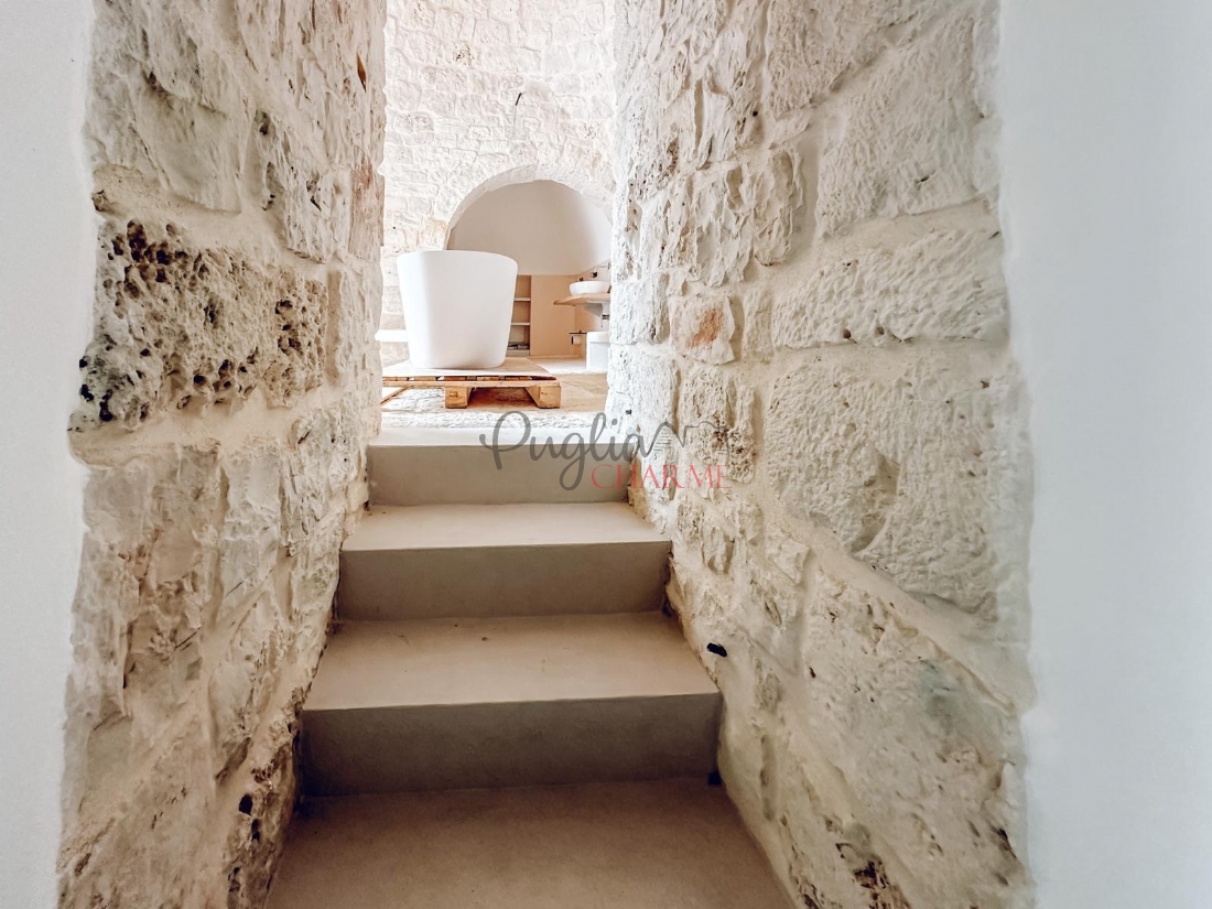 Questa struttura è concepita per valorizzare gli splendidi spazi esterni, con ampi piazzali e pergolato, rendendola ideale per vivere prevalentemente all'aperto. Potrebbe essere destinata a struttura ricettiva oppure come Pied-à-terre personale nel cuore della valle d’Itria.